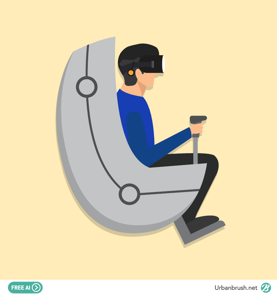 Hi. Urban Brush’s Master Creator Tommy. Below is a sample virtual reality illustrations ai file. This is an illustration image that depicts a man sitting in a virtual reality machine wearing a VR and holding a joystick by hand. VR game This is an illustration image depicting a man enjoying a virtual reality game that can be easily seen in a game room. Ideal for use in categories related to games, VR, virtual reality, chairs, men, 3D, and more. Download Virtual Reality Illustrations vector file and use it for design related to game.