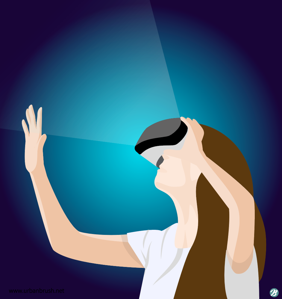 Urban Brush's Master Creator Tommy. The image below is a sample VR illustration ai free. It is an illustration image that expresses characteristic of general VR. VR is an illustration image depicting the feeling of coming out of the screen. This image is suitable for use in categories related to virtual reality, games, entertainment, and VR. VR illustration ai Download free vector illustration file and use it for design related to virtual reality.