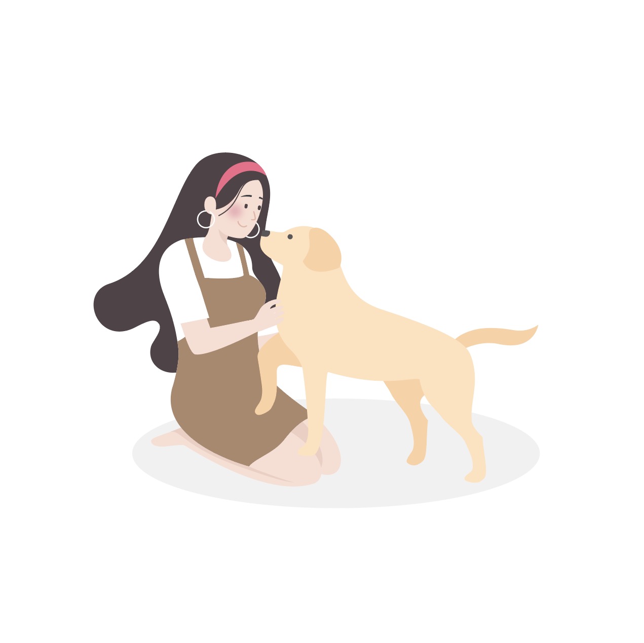 Hi, This is Urban Brush’s Master Creator Tommy. The image below is a sample illustration of a woman hugging a dog. It is an illustration image expressing a woman holding a large dog Golden Retriever. It is an illustration image depicting a woman kneeling and taking care of a dog. It is an illustrative image suitable for use in categories related to dogs, companion animals, dog training, dog grooming, companion dogs, retrievers, and dog grooming. Download the dog hugging female illustration vector file and use it for design related to companion animals. The fonts included are examples and are not included in the file. Please contact the font company for usage.