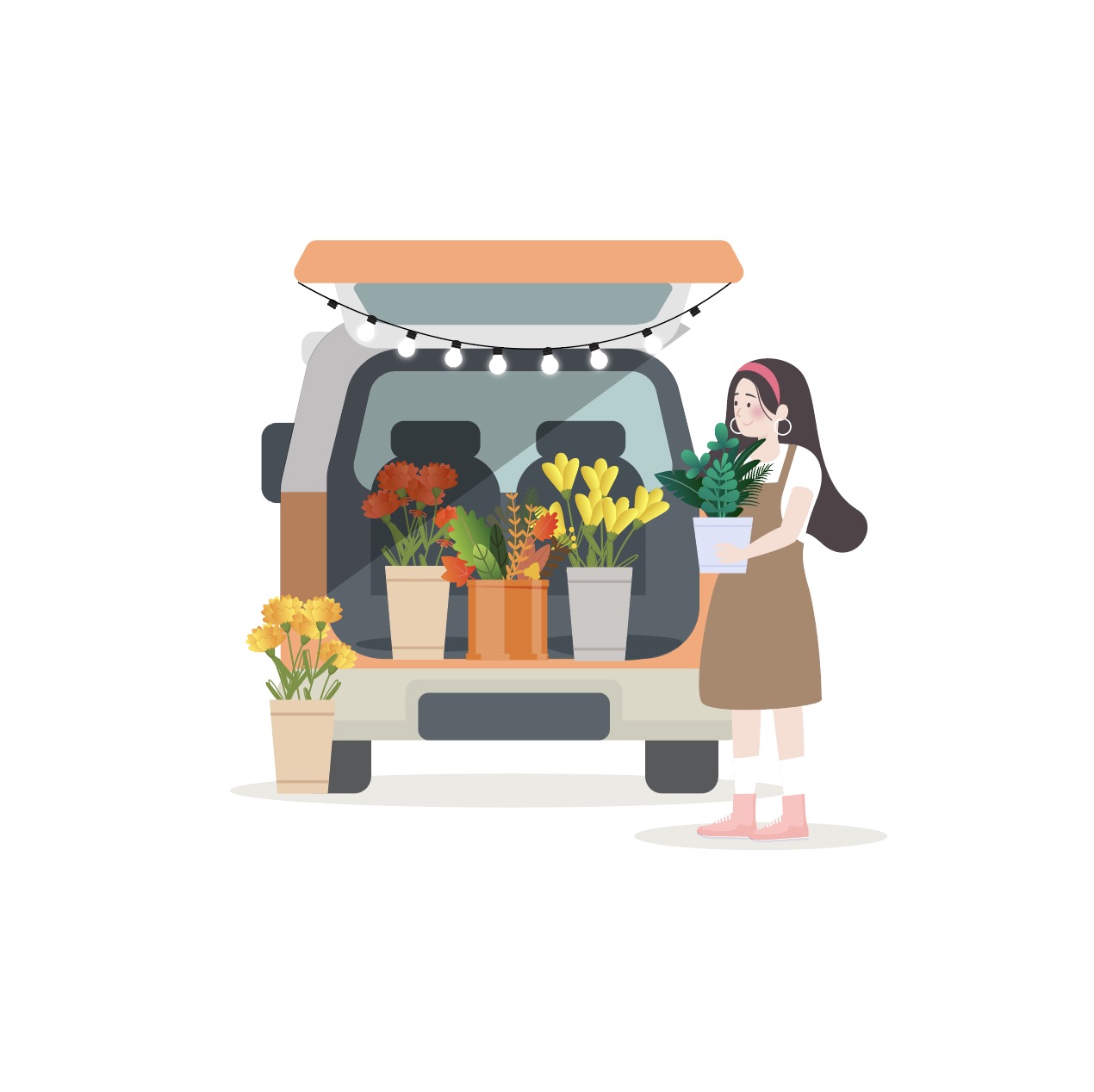 Hi, This is Urban Brush’s Master Creator Tommy. The image below is a sample illustration of a woman selling potted flowers. It is an illustration image expressing a woman selling potted plants in a car. It is an illustration image depicting a woman selling flowers. It is an illustrative image suitable for use in categories related to flowers, potted plants, flower gardens, florists, plants, florists, and florists. Download the flower pot sales female illustration vector file and use it for design related to potted women. If you need a graphic design request, search KakaoTalk “Designer Tammy” and contact us. The fonts included are examples and are not included in the file. Please contact the font company for usage.