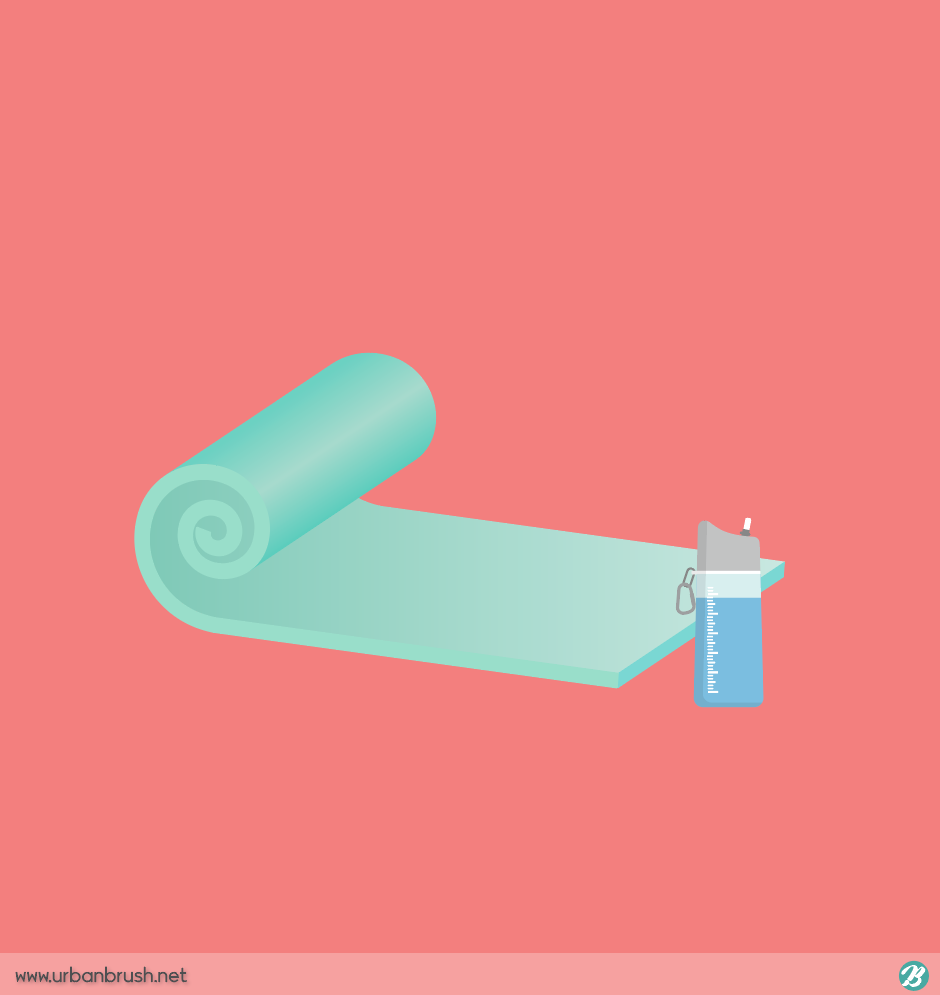 Hi. Urban Brush’s Master Creator Tommy. The image below is a sample yoga mat illustration ai file. It is an illustration image that is composed of a mat and a sports water bottle which are used when exercising indoors. In general, it is a mat used when playing yoga sports, and a water bottle is used to symbolize exercise. Yoga mat, exercise, sports, pilates, and related categories are suitable for use in the illustrations. Download the yoga mat illustrations vector file and use it for sports related design.