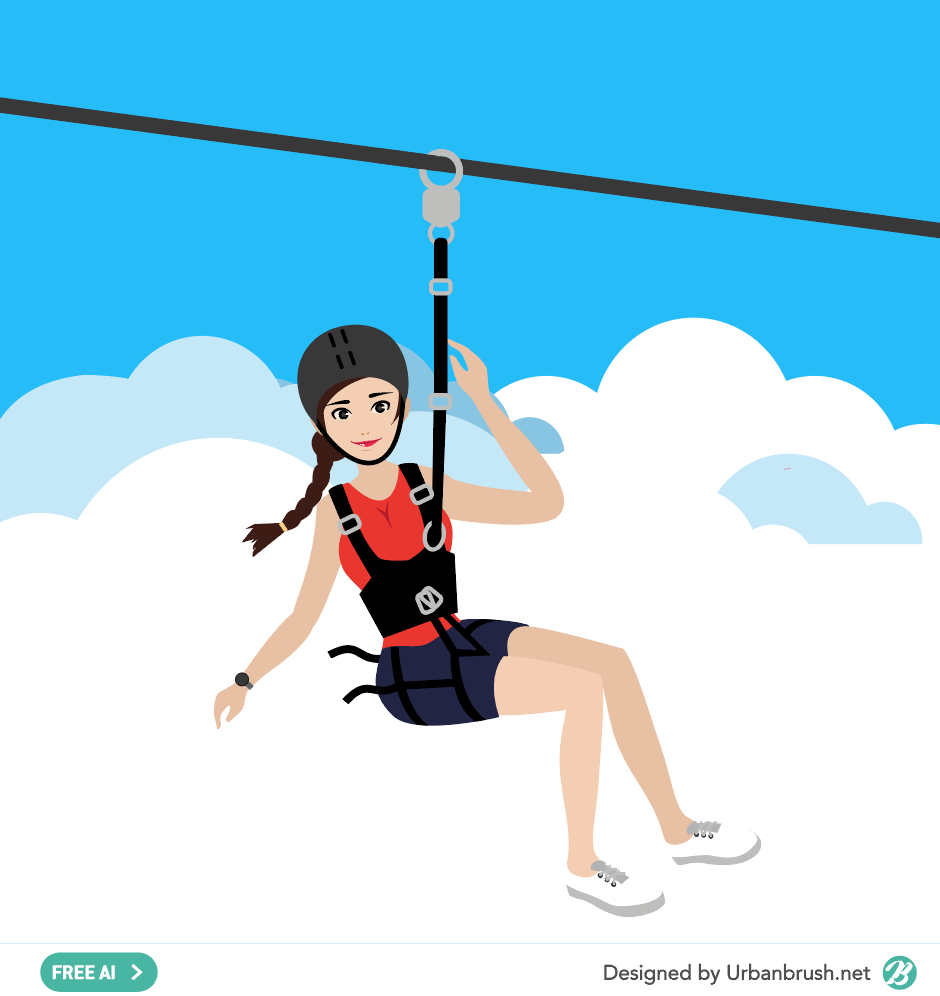 Hi. Urban Brush’s Master Creator Tommy. The image below is a sample of ai file with a zip line illustration. This is an illustration image depicting a woman coming down the straw line. She is leaning down the line in line, expressing the woman wearing a helmet and wearing safety gear. Ideal for use in categories related to zip lines, extreme sports, leisure, paragliding, and more. Download the zip line illustration vector file and use it for design related to leisure sports.