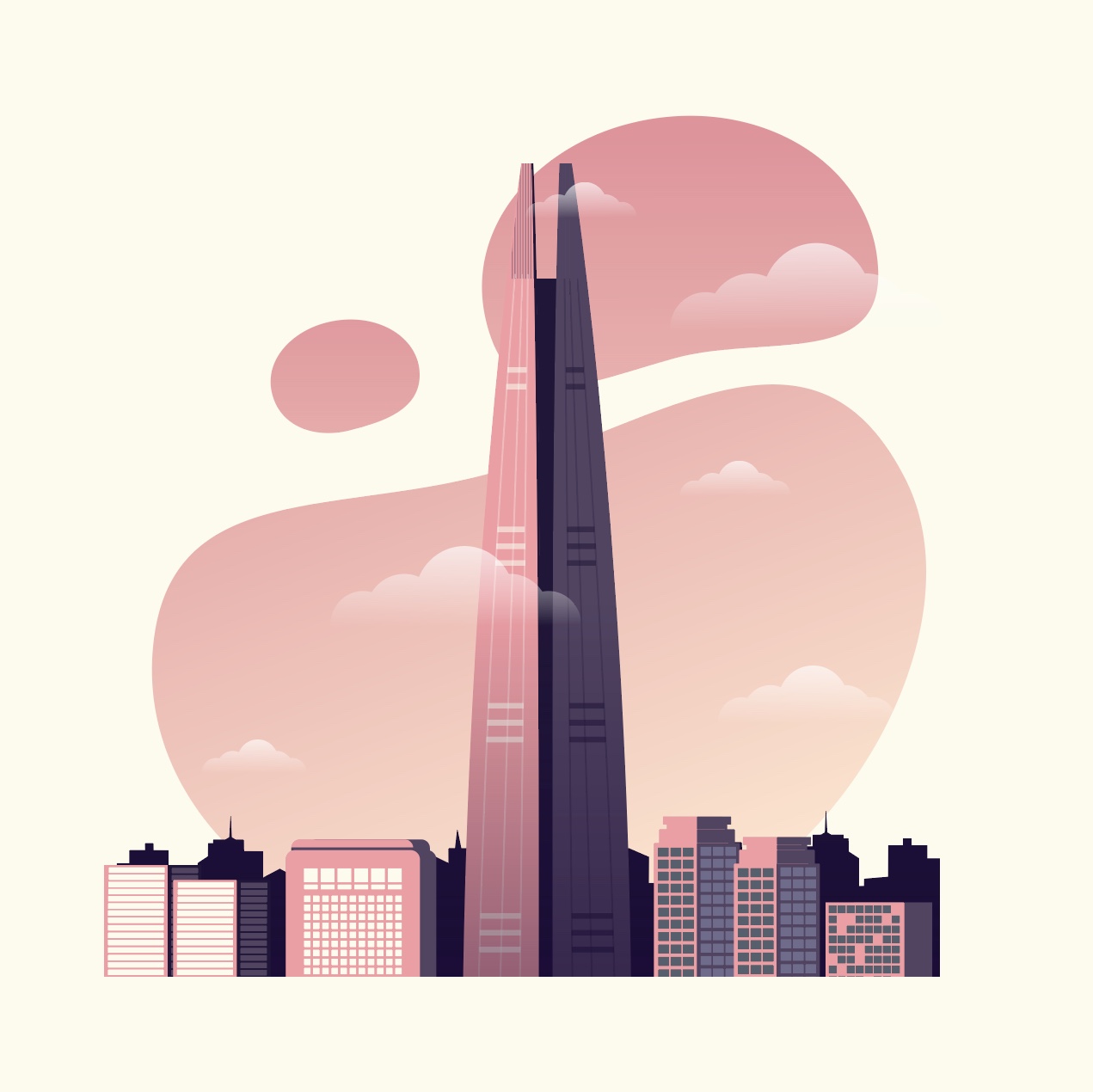 [EN] Hi. This is Tommy, Master Creator of Urban Brush. The image below is a sale product of Lotte Tower Skyway illustration. It is an illustration image expressing the Lotte World Tower, a representative skyway in Seoul, Korea. It is an illustration image of Jamsil depicting Lotte Tower as the center. It is an illustrative image suitable for use in categories related to Korea, Jamsil, Songpa-gu, Lotte World, Lotte Tower, travel, and landmarks. Purchase the Lotte Tower Skyway illustration vector file and use it for design related to Korean landmarks. * Purchased files are provided as ai files (CS6 or higher) and jpg files, and fonts in the example images are not included.