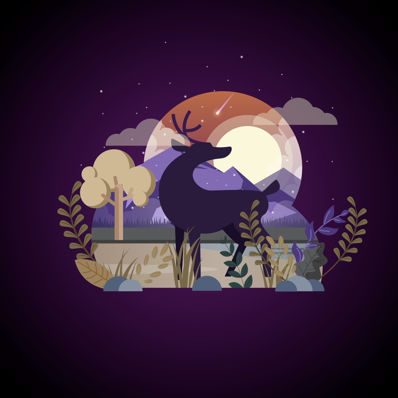[EN] Hi. This is Tommy, the Master Creator of Urban Brush. The image below is a sale product of a natural deer landscape illustration. It is an illustration image that expresses the image of a deer in a natural landscape. It is an illustration image depicting a deer in the jungle. This image is suitable for use in categories related to jungle, deer, animals, nature, landscapes, plants, forests, etc. Buy a natural deer landscape illustration vector file and use it for design related to natural deer. * Purchased files are provided as ai files (CS6 or higher) and jpg files, and fonts in the example images are not included.